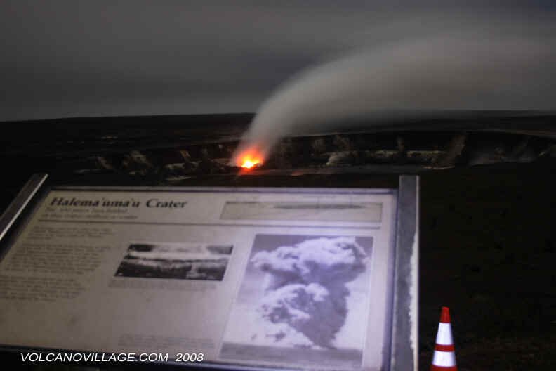 Halema`uma`u Crater, Kilauea Volcano, after being inactive for almost thirty five years, gave everybody a wake up call on March 19th 2008. The crater began venting a incandescent gas on March 11th or 12th, and cut loose with a series of explosions early in the morning on March 19th.